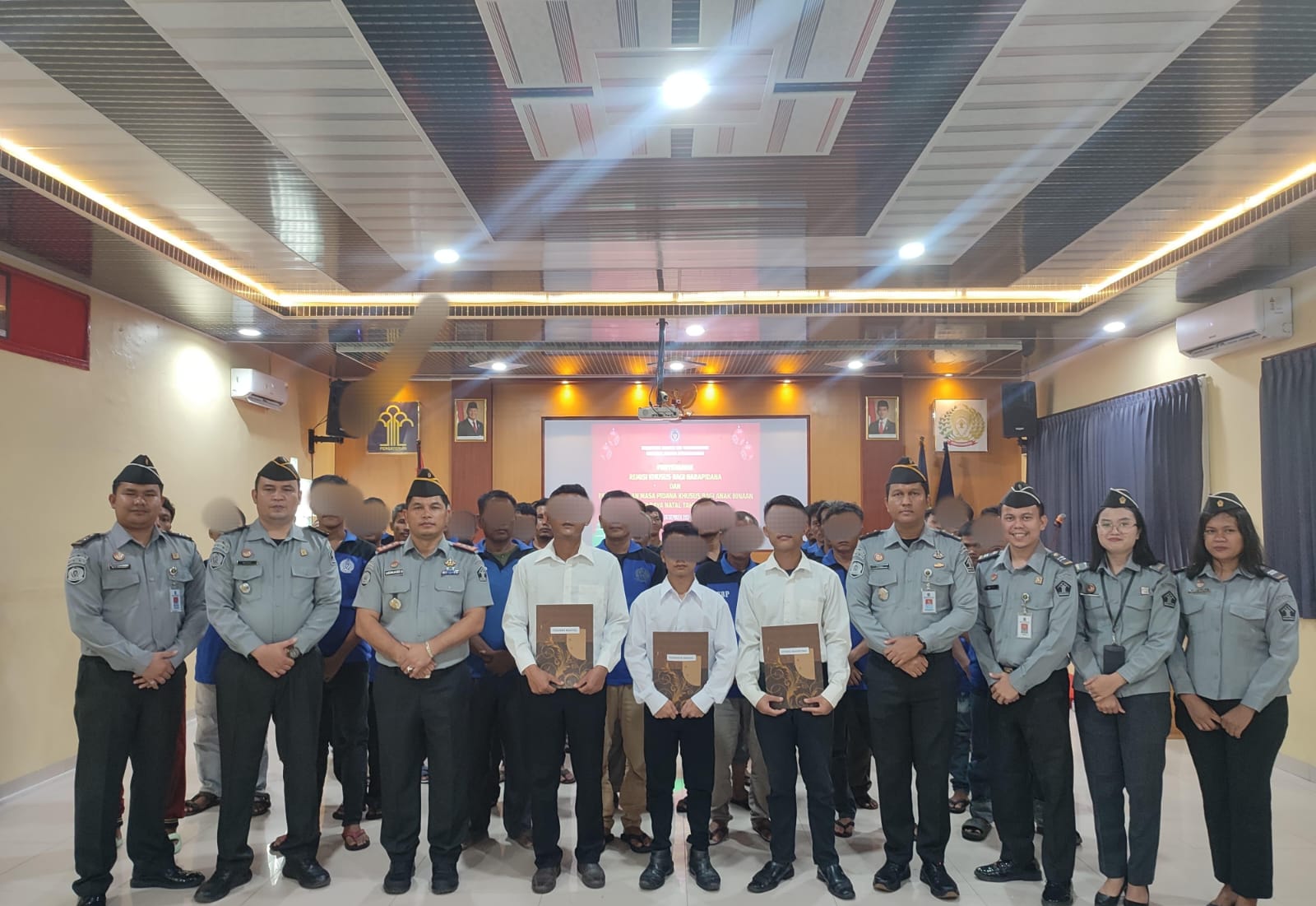 Bertempat di Aula Sasana Tama Lapas, Kalapas Leonard menyerahkan secara simbolik SK remisi kepada 3 orang warga binaan. Pada kesempatan itu, Kalapas Leonard membacakan sambutan Menteri Imigrasi dan Pemasyarakatan Republik Indonesia dalam amanatnya. Rabu, 25/12/2024.
