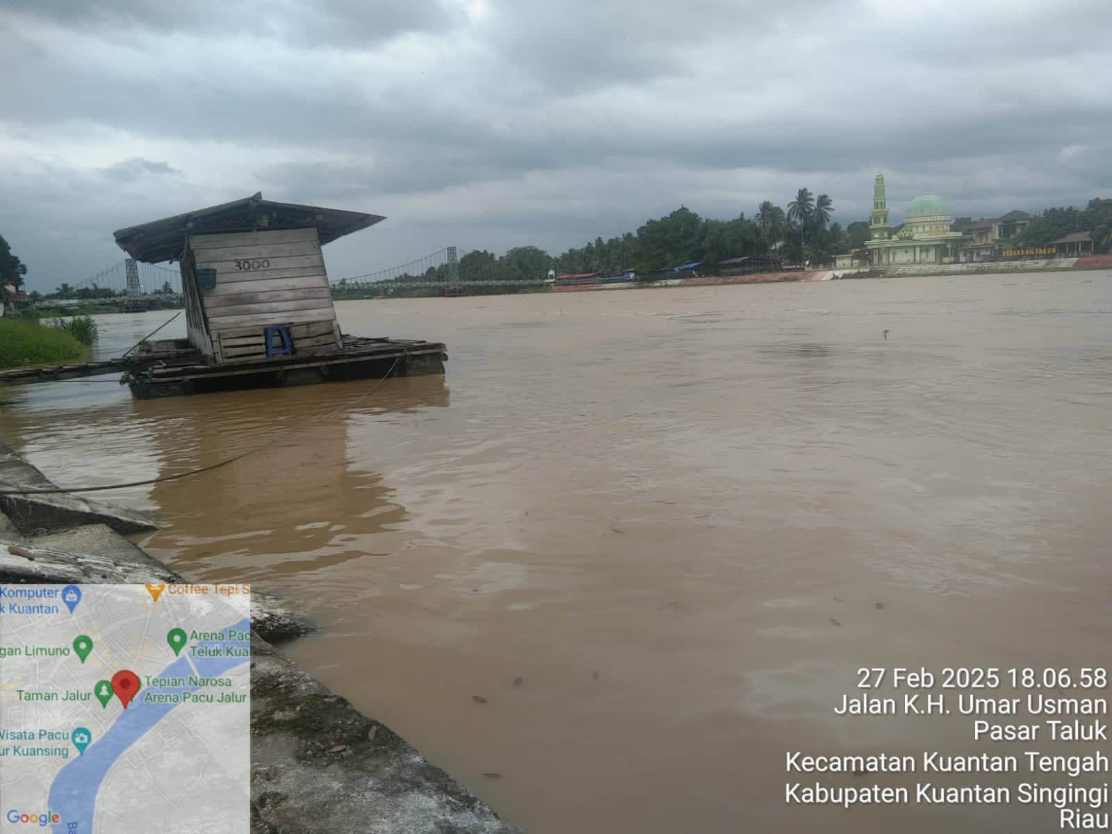 TALUKKUANTAN-,Beberapa hari terakhir Taluk kuantan di landah hujan deras hari Rabu (26/2/2025). Mulai dari pagi sampai malam hujan terus menerus hingga mendampak sungai Kuantan meluap naik kepermukaan.