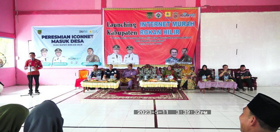 Rohil – (UtamaPos.com) Bupati Rokan Hilir Afrizal Sintong S.IP didampingi Kadis Kominfotiks Rohil Indra Gunawan SE,MH Secara langsung meresmikan Iconnet Masuk Desa sekaligus Launching internet murah di Kepenghuluan Bangko Mukti, Kecamatan Bangko Pusako, Kamis (11/5/2023).