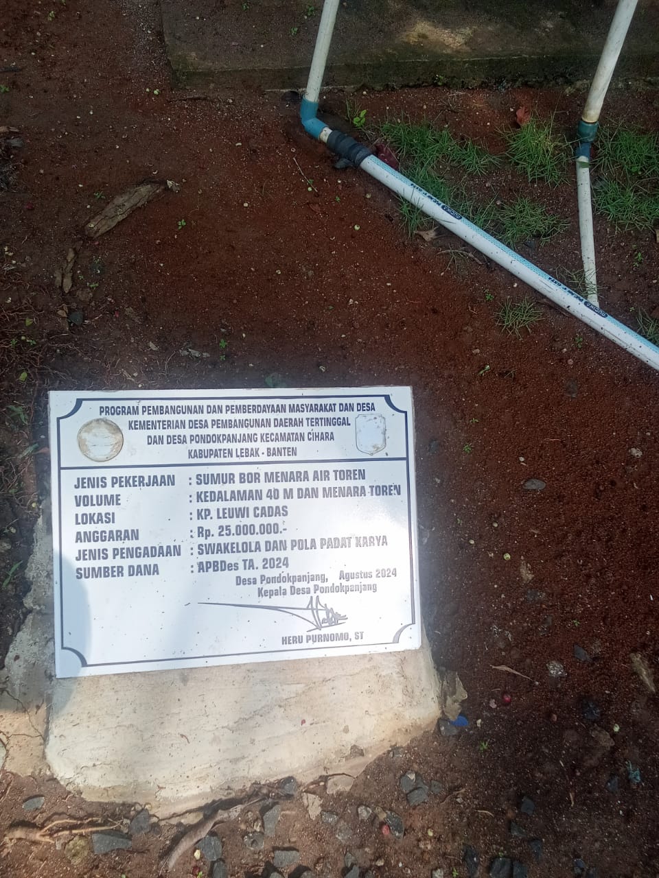 Selain itu, prasasti bertulisan tersebut ditempel di tembok pembuatan sumur bor dan di fasilitasi tanda tangan kepala Desa Pondok panjang sehingga terlihat ‘Cantik’ walaupun tidak bermanfaat bagi masyarakat kampung lewi Cadas Desa Pondok panjang Kecamatan Cihara Kabupaten Lebak Provinsi Banten.