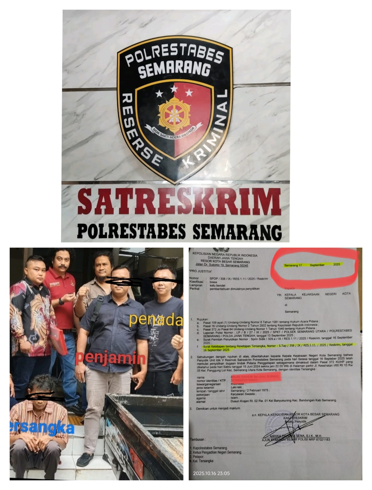 Diketahui bahwa BI telah diamankan oleh penyidik Polsek Semarang Utara pada Sabtu (13/9/2025).