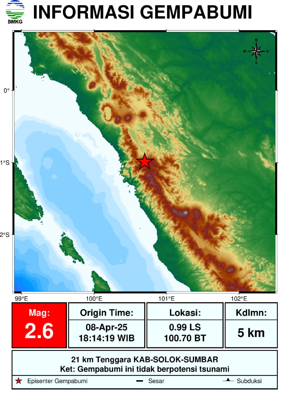 Kabupaten Solok, Utamapos.com |BMKG mencatat adanya gempa di tenggara kabupaten Solok Selasa 8/4/2025.