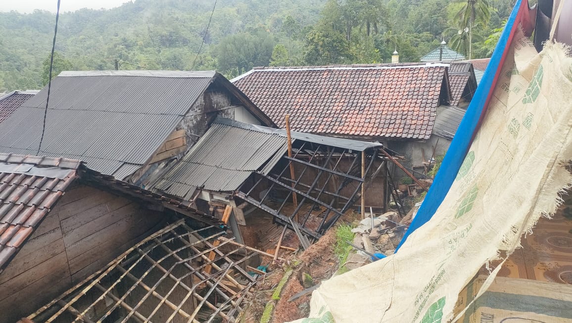Rumah Juhro longsor sehingga menghantam Dua rumah warga. Akibat bencana tanah longsor itu, 3 rumah warga mengalami kerusakan.