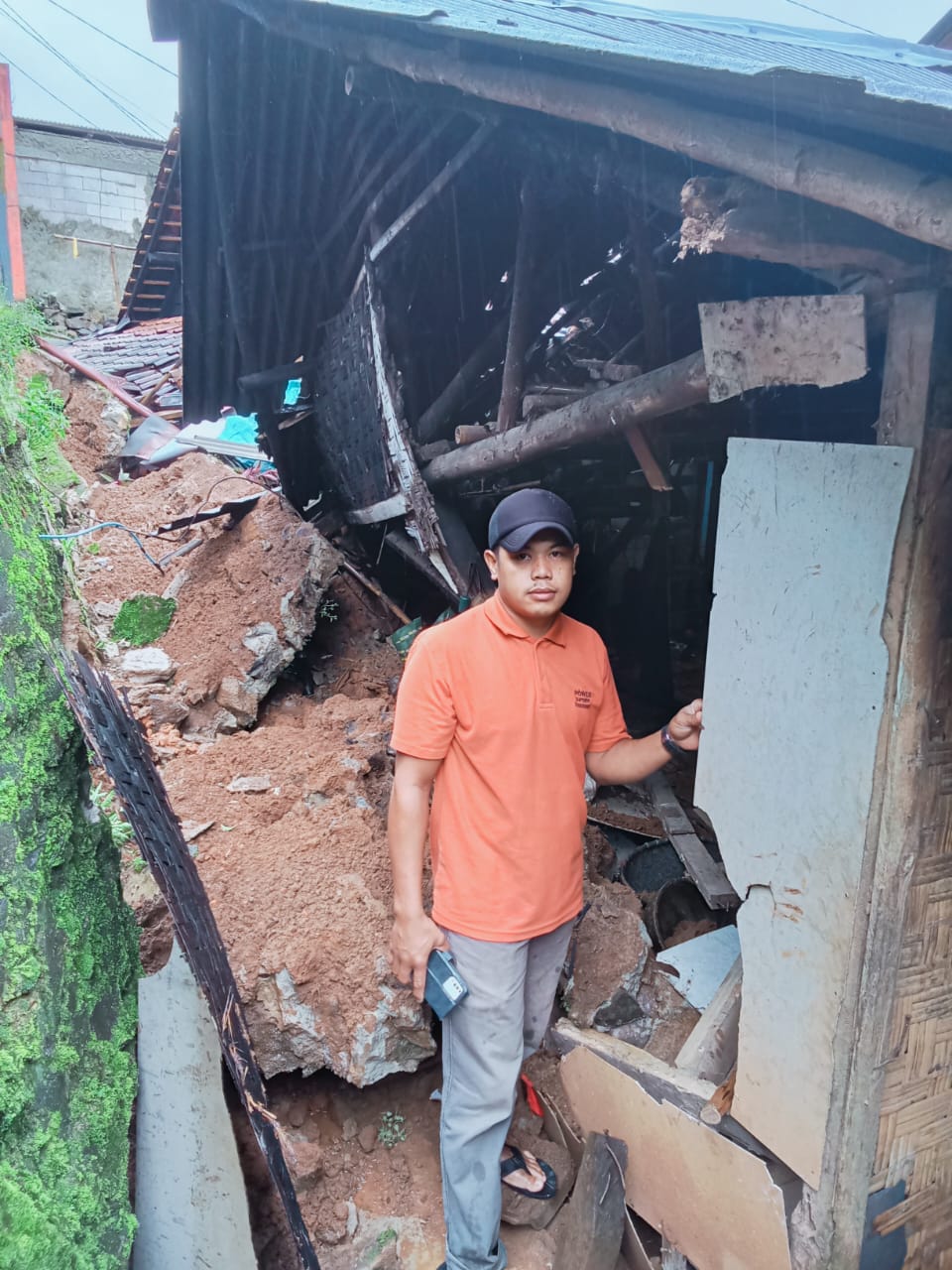 Akibat curah hujan yang sangat tinggi mengakibatkan rumah warga longsor dan menimpa rumah dibawahnya sehingga mengalami kerusakan parah lokasi kejadian longsor di kampung Cicariang dua RT 01 RW 08 Desa Girimukti Kecamatan Cilograng Kabupaten Lebak Provinsi Banten.