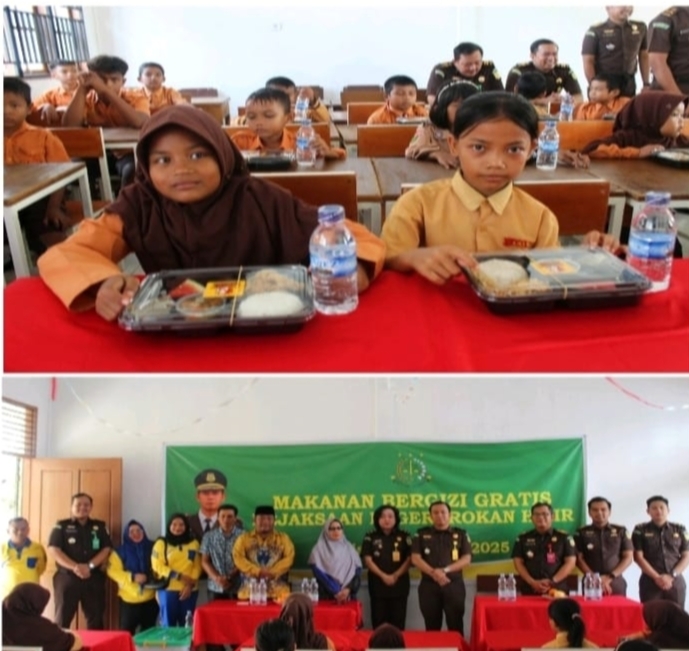 UtamaPos.com || Bagansiapiapi- Kejaksaan Negeri Rokan Hilir (Kejari Rohil) Bagikan Makan Siang Bergizi Gratis untuk Siswa dan Siswi SDN 015 Bagan Jawa.