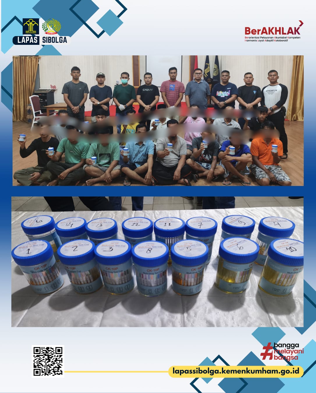 Dari tes urine yang dilaksanakan terhadap warga binaan berdasarkan hasil pemeriksaan dari tim medis Lapas Sibolga seluruh sampel yang diperiksa negatif narkoba, kegiatan berlangsung dengan aman dan kondusif. (Tim Humas Lasiga).