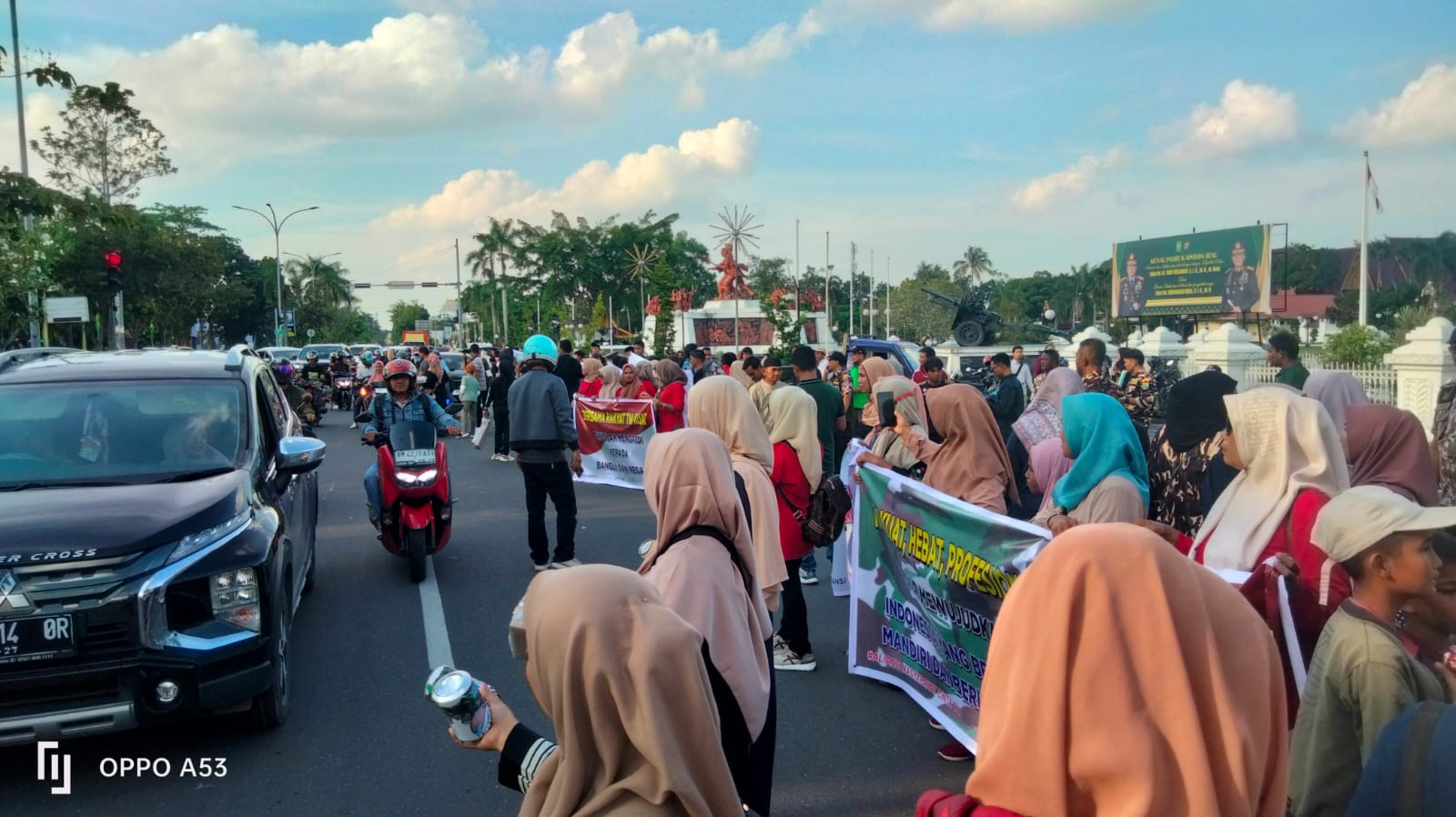 Dalam aksinya masaa membagikan Takjil dan membentangkan spanduk yang bertuliskan sebagai berikut :