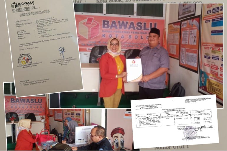 Pelaporan Tim Hukum NC-LM tersebut, diterima oleh pegawai Sekretariat Bawaslu Kota Solok atas nama Syifaun Istiqaamah Alqudus yang didampingi langsung Ketua Bawaslu Kota Solok, Rafiqul Amin, Kordiv Hukum, Pencegahan, Parmas dan Humas, Ilham Eka Putra, dan Kordiv Penanganan Pelanggaran dan Penyelesaian Sengketa Eka Rianto serta dari Kejaksaan dan Kepolisian, dengan tanda bukti penyampaian laporan, Nomor: 01/PL/PW/Kota/03.07/X/2024.