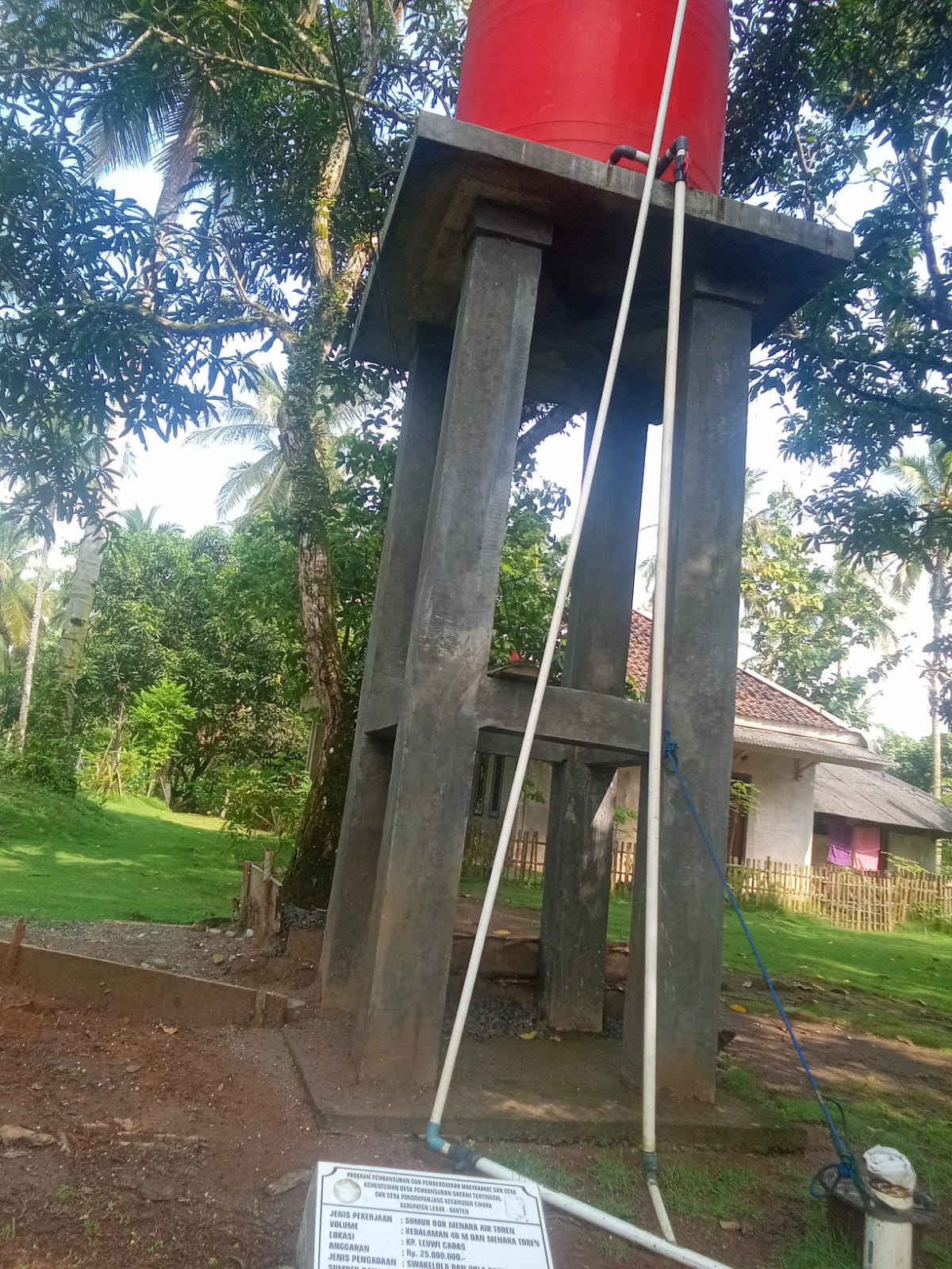 Jenis pekerjaan Sumur Bor Menara Air Toren,Kedalam 40 M dan Menara Toren Kp Lewi Cadas Anggaran Rp 25.000.000(Dua puluhan lima juta rupiah) SWAKELOLA DAN POLA PADAT KARYA APBDes tahun 2024.