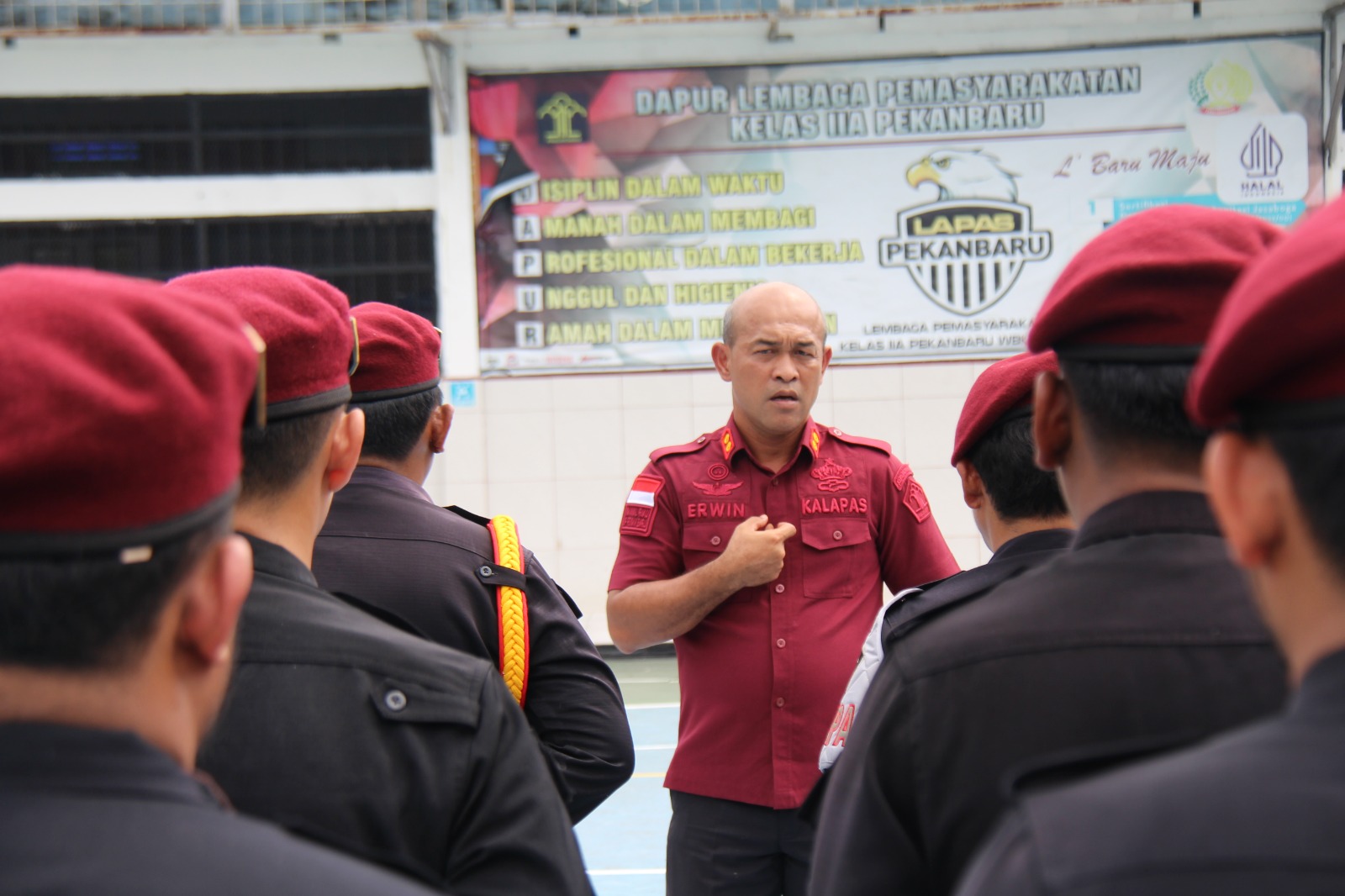 Dalam rangka memperkuat tugas dan fungsi Regu Pengamanan, Kepala Lapas Pekanbaru, Erwin Fransiskus Simangunsong, memimpin langsung apel serah terima regu pengamanan. Dalam arahannya, Kalapas menekankan untuk terus meningkatkan deteksi dini dan kontrol keliling dalam mengantisipasi gangguan keamanan dan ketertiban.