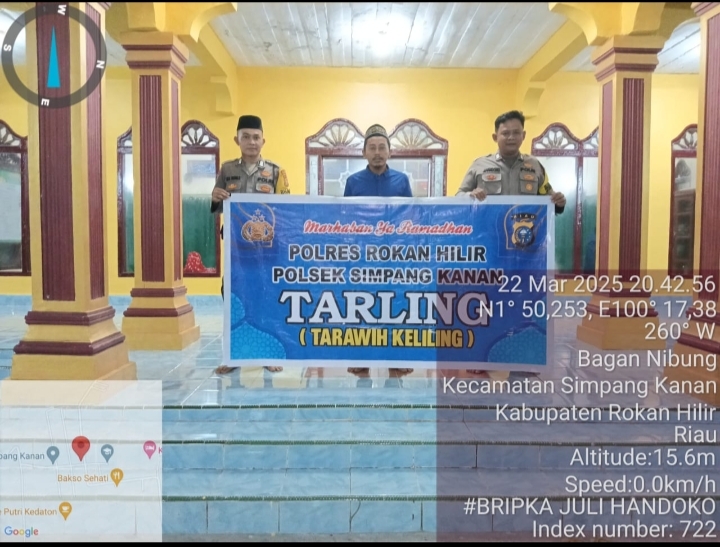UtamaPos.com || SIMPANG KANAN – Dalam rangka mempererat silaturahmi dengan masyarakat sekaligus meningkatkan situasi keamanan dan ketertiban masyarakat (Kamtibmas) selama bulan suci Ramadhan, Polsek Simpang Kanan melaksanakan kegiatan sholat tarawih keliling di Masjid Nurul Iman, Kepenghuluan Bagan Nibung, Kecamatan Simpang Kanan, Kabupaten Rokan Hilir, pada Sabtu, 22 Maret 2025.