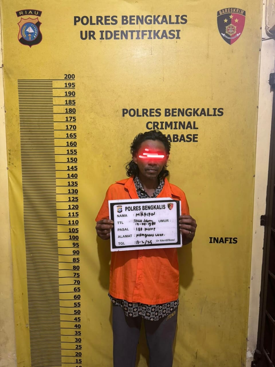 Bengkalis,|Riau – Tim Unit II Satreskrim Polres Bengkalis bergerak cepat menangkap M.AF, pelaku pembakaran hutan dan lahan seluas kurang lebih 1,5 hektare di Jalan Sepakat, Dusun Sei Buyung, Kecamatan Bantan, Kabupaten Bengkalis. Peristiwa ini terjadi pada Minggu, 9 Februari 2025, sekitar pukul 17.00 WIB.