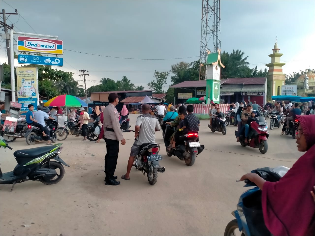 Menghimbau pengendara bermotor agar menjaga keselamatan dengan menggunakan helem. Dan mengatur para pengendara bermotor  agar berjalan lambat dan berhati hati pada saat melintas di daerah pasar ramadhan.