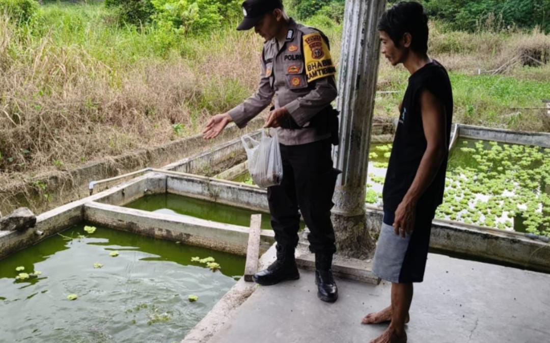 Kegiatan yang dilaksanakan oleh Bhabinkamtibmas Simpang Kanan, Bripka Eka Iwan pada Selasa (4/3) siang itu berupa pengecekan budidaya ikan nila milik Solihin dengan luas lahan 3×4 sebanyak 3 kolam.