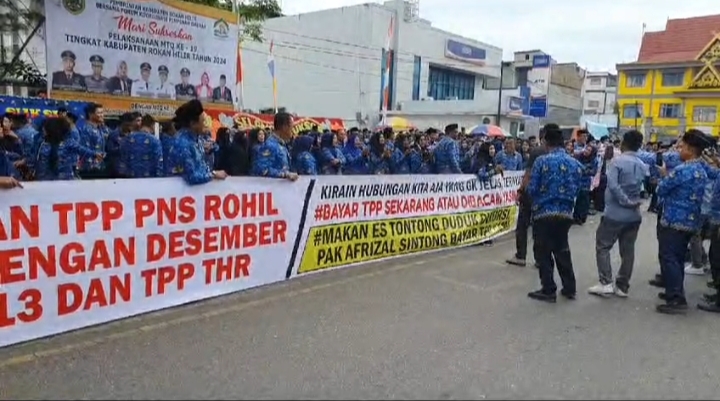 UtamaPos.com || Rokan Hilir- Selasa 17 Desember 2024. Ratusan Aparatur Sipil Negara (ASN) dan tenaga honorer di Kabupaten Rokan Hilir (Rohil) turun ke jalan, menggelar aksi demonstrasi di depan kantor Badan Pengelola Keuangan dan Aset Daerah (BPKAD) Selasa pagi.
