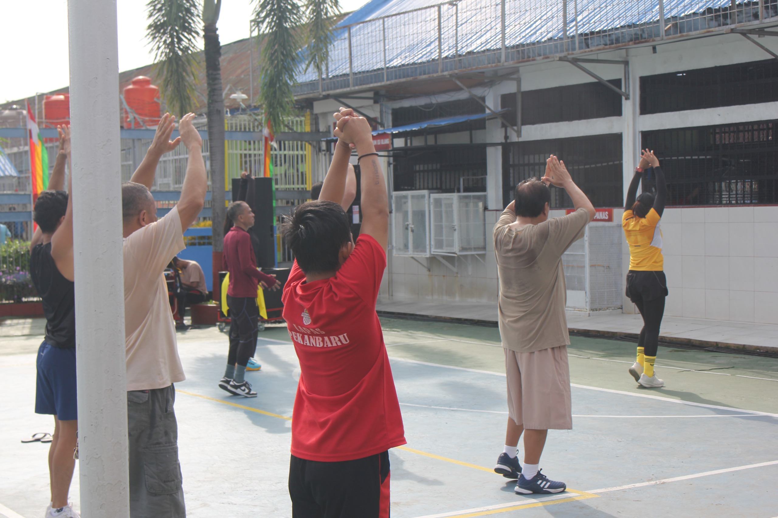 Pekanbaru – Olahraga merupakan suatu kegiatan yang dapat meningkatkan kesehatan tubuh manusia. Oleh sebab itu warga binaan Lembaga Pemasyarakatan (Lapas) Kelas IIA Pekanbaru mengikuti kegiatan olah raga senam yang diadakan di Lapangan Olahraga Lapas Pekanbaru mulai pukul 08.00 WIB sampai dengan selesai, Selasa (12/11/2024).