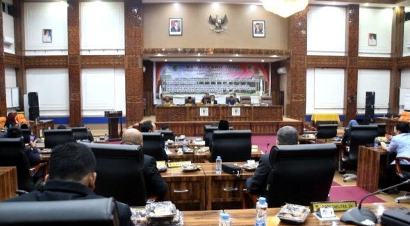 Rapat paripurna DPRD Kabupaten Rokan Hilir dipimpin langsung wakil ketua Hamzah,setelah mendengar pidato penyampaian Bupati Kabupaten Rokan Hilir terhadap Rancangan peraturan daerah tentang pertanggungjawaban pelaksanaan anggaran pendapatan dan belanja daerah Kabupaten Rokan Hilir tahun 2023.