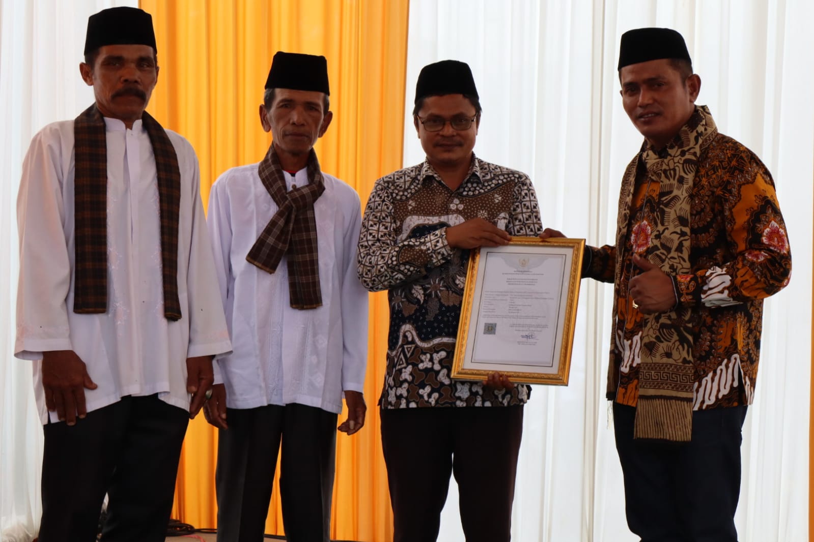 Pada kesempatan ini wakil Bupati Solok juga menyerahkan sertifikat kekayaan intelektual komunal dari Kemenkumham untuk karya budaya tari Tupai Janjang yang masih tetap melestarikan tradisi khas dari nagari koto hilalang.